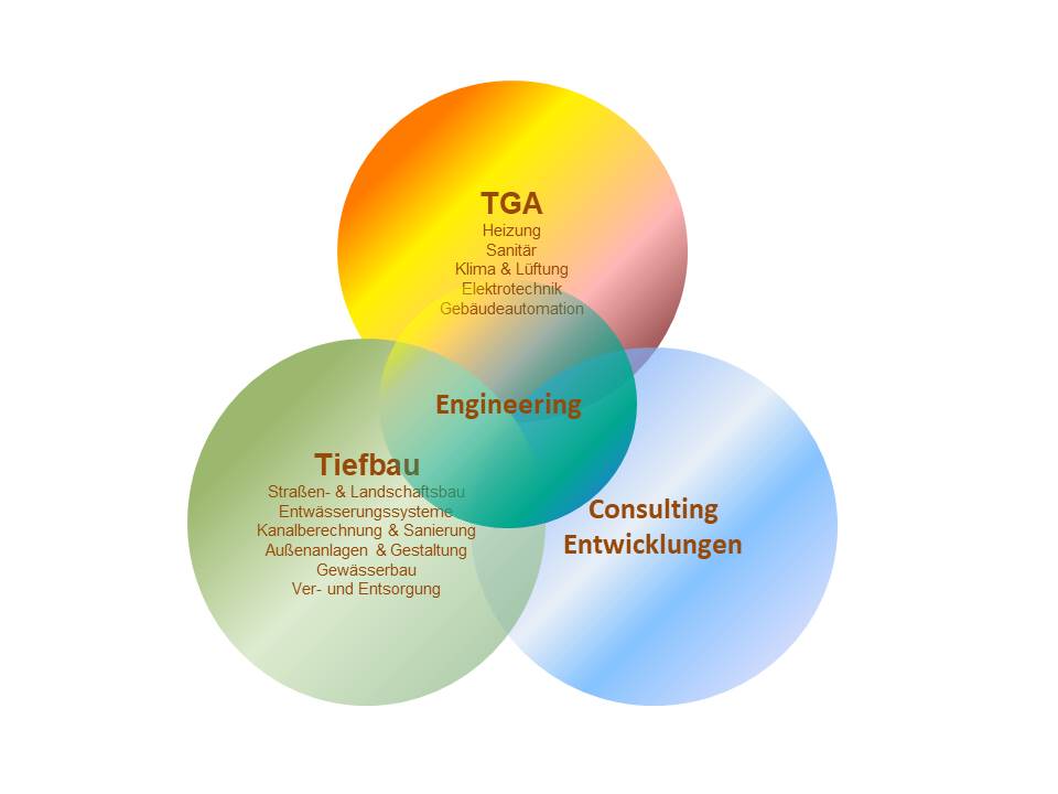Im ersten Jahr haben wir uns, aufbauend auf umfangreichen Erfahrungen auf den Fachbereich Tiefbau konzentriert. Bereits im dritten Jahr konnten wir unser Kompetenzspektrum um die TGA Planung - das volle Spektrum der Gebäude-, Betriebs-, Haus- und Elektrotechnik - erweitern.